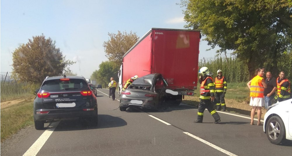 AKTUÁLNĚ: Osobní auto nedobrzdilo před kolonou, narazilo do kamionu před sebou