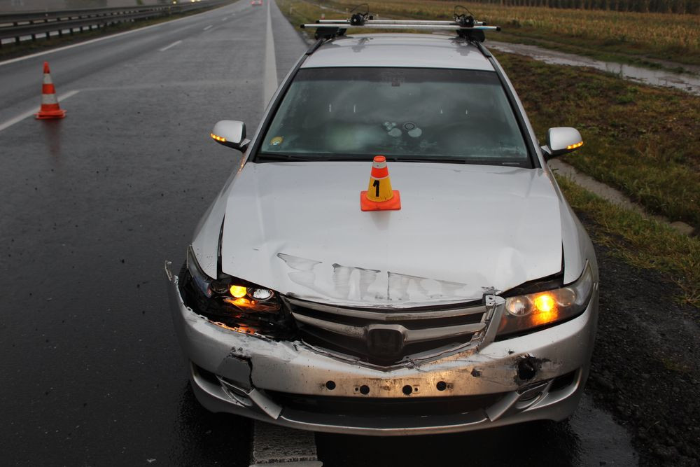 Řidič jel ve větru a dešti na dálnici příliš rychle, s autem narazil do svodidel