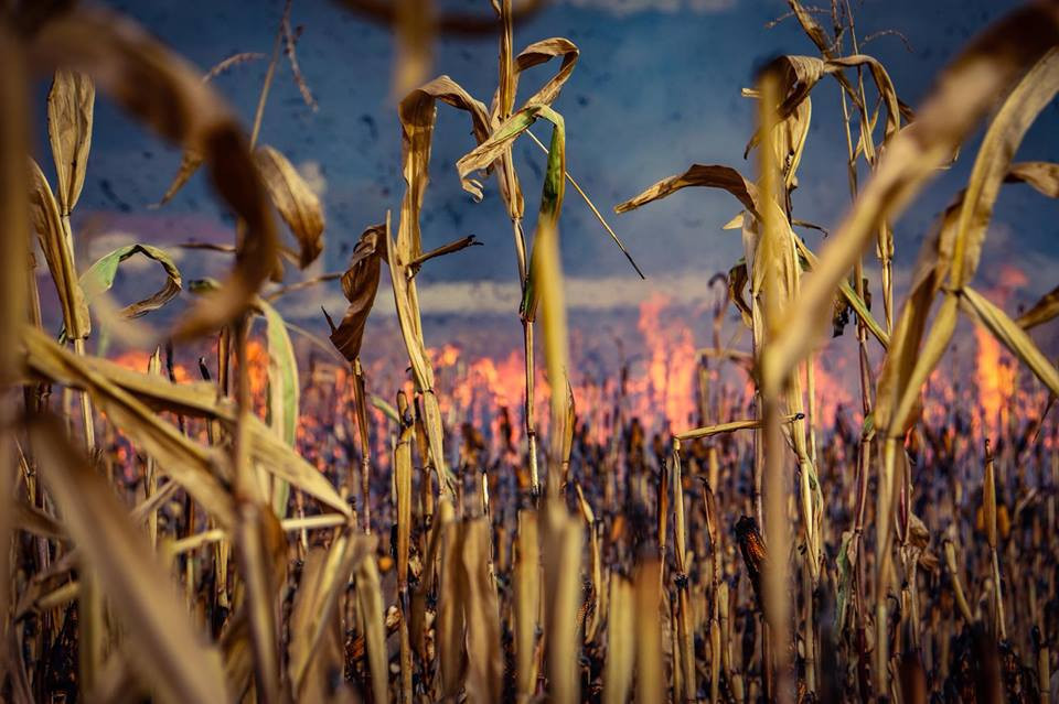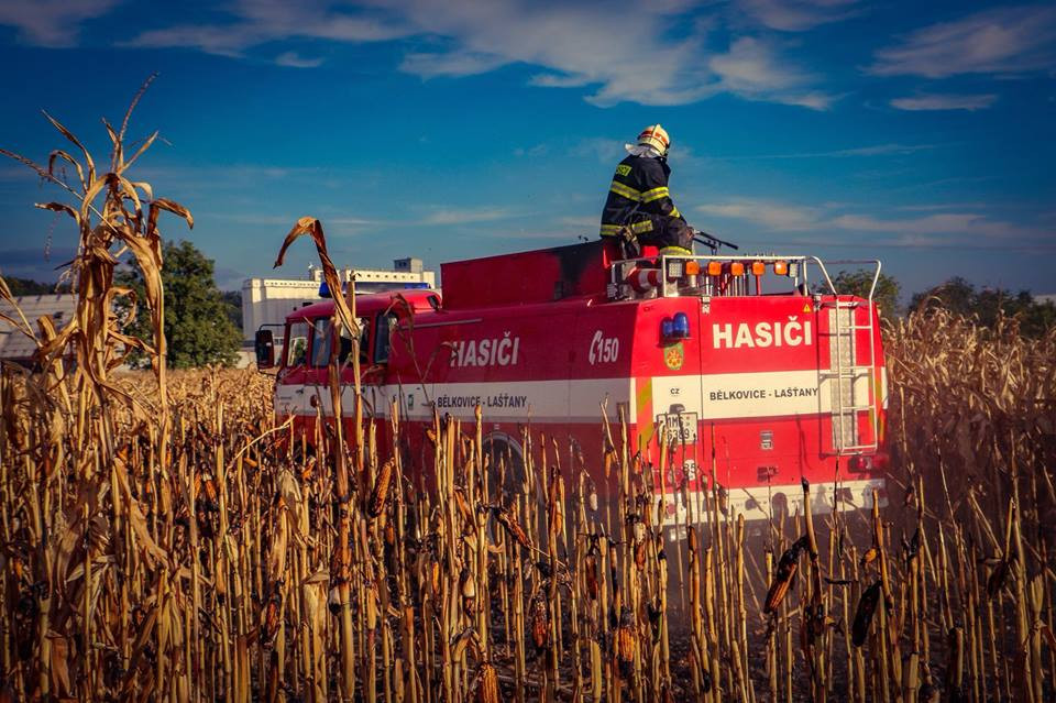 FOTO/VIDEO: Hasiči likvidovali u Šternberka rozsáhlý požár pole s kukuřicí