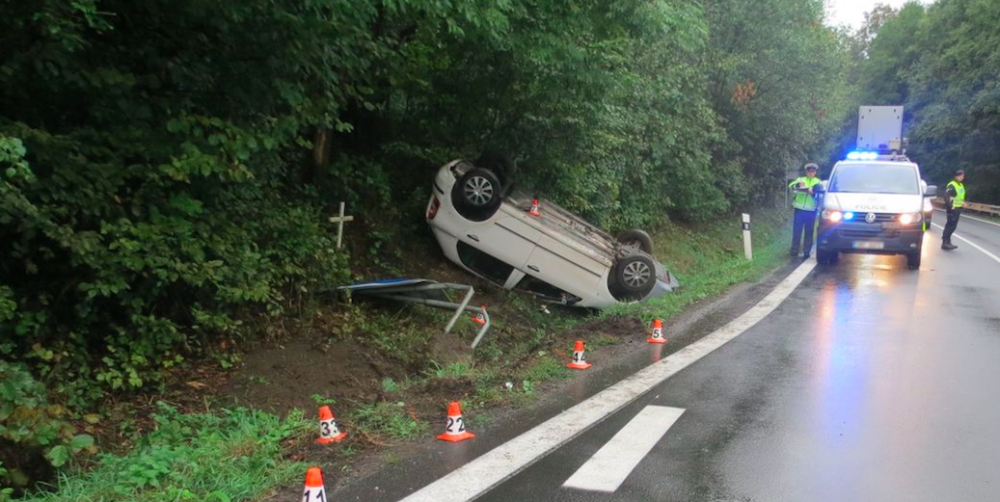 Na nebezpečné křižovatce Loučení dostal řidič se svým autem smyk, vozidlo se přetočilo na střechu
