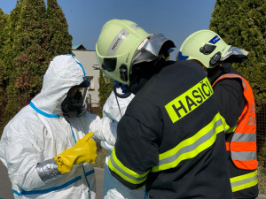 Také příslušníci HZS se musejí v tomto prostředí chránit, proto měli jednorázové ochranné obleky, holínky a masky s filtry MOV-6, které jsou tisíckrát účinnější než respirátory třídy FFP3. Kompletní procedura zabrala necelé dvě hodiny.