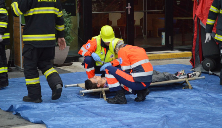 Záchranáři, hasiči i policisté dnes od půl osmé ráno museli rychle reagovat na sehranou událost, při které obsadili vrchní patro Šantovky tři teroristé. Jeden měl u sebe nůž, druhý střelnou zbraň a třetí útočil na lidi kolem kyselinou. Na místě byl během chvíle velký počet zraněných, a záchranné složky musely ukázat, že jsou na takovou akci připravené...