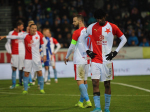 Fotbalisté vedoucí Slavie v 17. kole první ligy remizovali 0:0 v Olomouci. Obhájci titulu, kteří odehráli celý druhý poločas bez vyloučeného záložníka Lukáše Masopusta, ztratili body po osmi výhrách za sebou a teprve potřetí v sezoně. Pražané mají v čele tabulky dvanáctibodový náskok na druhou Plzeň, která může stáhnout manko v neděli na hřišti Karviné. Sigma prodloužila sérii bez vítězství na osm utkání a zůstala desátá.