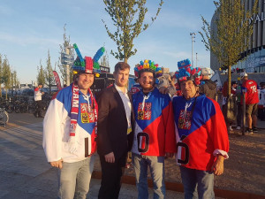 Zatímco před dvěma lety byli olomoučtí fanoušci ve Francii v tematických kostýmech Asterixe a Obelixe, před rokem v Dánsku zase v lego helmách, na Slovensko letos přivezli kostýmy s tematikou česko-slovenských hokejových legend. Jednoho z fanoušků, Roberta Stejskala z Horky nad Moravou, jsme krátce vyzpovídali.