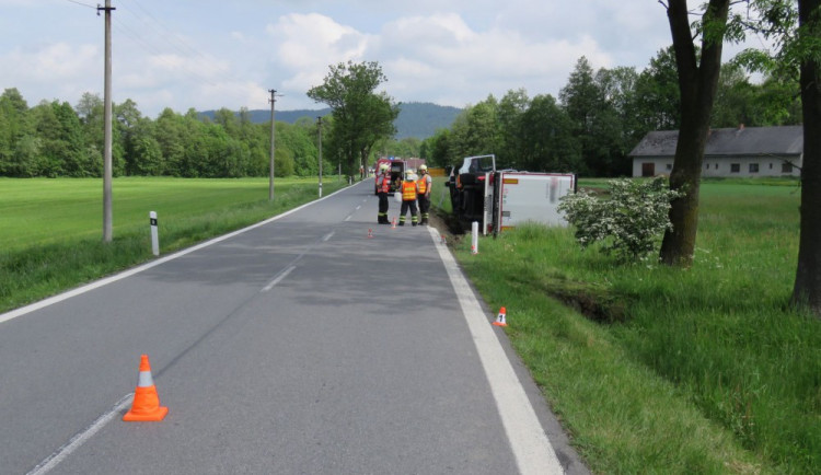 V pondělí před devátou hodinou ranní havaroval mezi obcemi Štíty a Bukovice kamion. Nešlo však o chybu řidiče, pod kamionem se totiž utrhla krajnice.