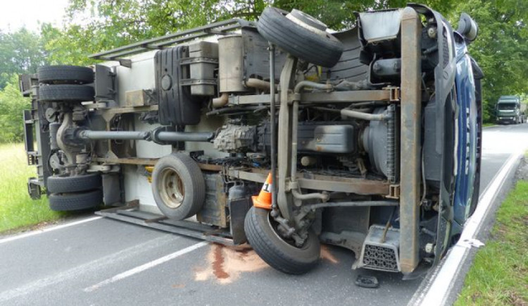 Včera před devátou hodinou dopolední zablokovalo nákladní auto silnici mezi Mikulovicemi a Zlatými Horami. Čtyřiačtyřicetiletý řidič jel s nákladním vozem značky Iveco ve směru od Mikulovic na Ondřejovice, a když se míjel s protijedoucím vozidlem, najel na krajnici, která se utrhla.
