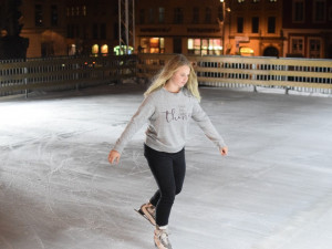 Na olomouckém Dolním náměstí se od soboty 10. listopadu bruslí. První led na mobilním kluzišti si užívaly hlavně děti. Dospělí měli možnost ochutnat první punč. Podívejte se na fotky a video.
