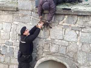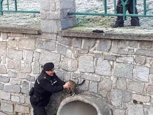 Šternberští městští policisté ve středu 5. prosince zachraňovali kočku, která se nedokázala sama dostat z koryta řeky.