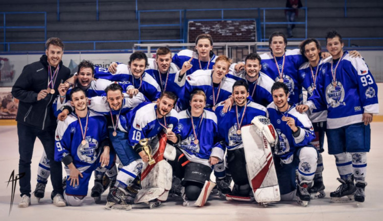 Hokejistům University Shields Olomouc už sezóna Evropské univerzitní hokejové ligy skončila. Jádro týmu se však vydalo na začátku dubna bojovat o další univerzitní úspěchy na Akademické mistrovství České republiky. A je z toho velký úspěch. Reprezentanti Univerzity Palackého si totiž ze Slaného odvezli bronzové medaile.