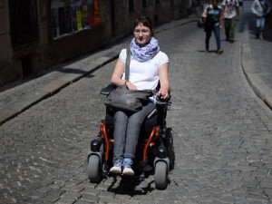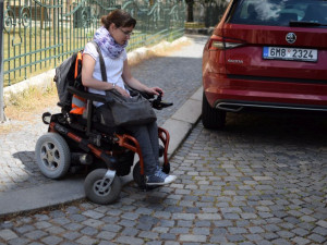 Zdenka sedí na elektrickém vozíku, který má hmotnost zhruba 150 kilogramů, dojezd asi třicet kilometrů a maximální rychlost zhruba dvacet kilometrů za hodinu. Do novějších vozíků, které hradí pojišťovna, už se dávají omezovače, které dovolí maximální rychlost šest kilometrů za hodinu. „Je to samozřejmě velká pomoc, ale musíš si fakt hlídat baterku a taky to nepřekoná všechny bariéry, takže když někde není sjezd, musím objíždět třeba celý blok na sídlišti a hledat ho. Jedno z míst, které by si zasloužilo nájezdy, je třeba u Galerie Moritz ve směru ze Slovenské ulice, kam se vypravíme teď.“