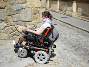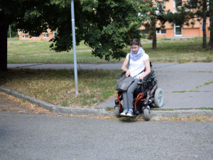 Když Zdeňka píchne kolo, může zavolat takzvanou odtahovku. „Je to taxislužba, která má přizpůsobená auta pro převoz člověka i s vozíkem, takže tu jsem volala na pomoc,“ vypráví Zdeňka cestou k Cyrilometodějské teologické fakultě, kde studuje. Do školy se dostane strmým nájezdem, který je ze zadní strany budovy. „V létě to ještě jde, ale když prší nebo když je zima, využiju raději mechanický vozík a pomoc asistenta, protože s tímto elektrickým vozíkem bych ten svah nevyjela a mohla bych se někde sama zaseknout. S tím elektrickým je to v zimě obecně potíž, protože je to jako v autě. Přestože se snažíte zatočit, jedete rovně.“