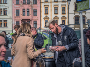 V rámci dnešního Dne lidí bez domova proběhla na Horním náměstí tradiční akce - od 11 hodin se zde rozlévala polévka, výtěžek z akce jde Charitě Olomouc, která se přes zimu stará o bezdomovce.