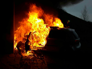 K hořícímu autu na dálnici D35 u Olomouce-Slavonína vyjížděli olomoučtí hasiči dnes těsně před osmou hodinou ranní. Auto hořelo v motorové části.