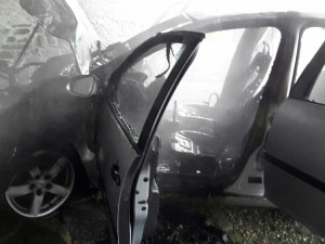 Řidič jel od Olomouce na Hněvotín a vyjel vpravo mimo silnici, kde narazil do betonového pilíře. Po nárazu došlo k požáru motorové části vozidla. Řidič nebyl pod vlivem alkoholu, stačil z auta vystoupit a nebyl zraněn.