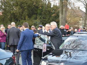 První setkání Miloše Zemana s občany v Olomouckém kraji proběhlo v obci Hněvotín. Před místní knihovnou ho přivítaly stovky lidí. Po oficiálním přivítání prezidenta v obci, se občané mohli hlavy státu ptát na různorodé otázky.