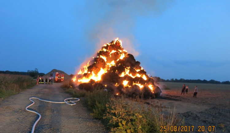 "Požár zachvátil celou plochu ložené balíkové slámy na ploše zhruba 15x10 metrů, svou intenzitou ohrožoval nedaleký další stoh. Jednotky zabezpečovaly možné rozšíření a asistovaly při postupném rozvážení pomocí zemědělského nakladače vlastníka," uvedl tiskový mluvčí hasičů Zdeněk Hošák.