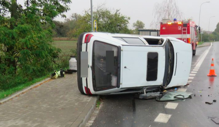 Řidič se svým autem přejel do protisměru a narazil do ostrůvku. Vlivem toho se auto přetočilo na střechu a skončilo na pravém boku.