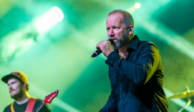 David Koller převezme majálesovou korunu od Heleny Sedláčkové, loňské královny majálesu a ředitelky Knihovny Univerzity Palackého v Olomouci.