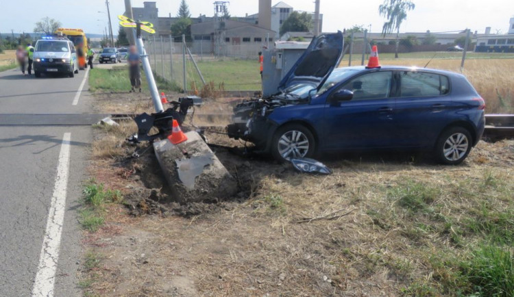 Čtyřiapadesátiletá řidička jela po patnácté hodině na rovném úseku z centra města, když z dosud nezjištěných příčin vyjela mimo vozovku. „U železničního přejezdu trati Kojetín - Tovačov narazila do sloupu železničního semaforu. Vlivem nárazu došlo k vyvrácení sloupu semaforu i s betonovou patkou směrem do kolejí," řekl policejní mluvčí František Kořínek.
