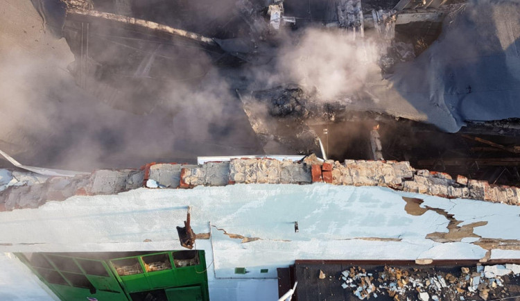 „Ráno na místo dorazil tým vyšetřovatelů hasičského záchranného sboru. Zjistil, že je konstrukce střechy nestabilní a nelze se pod ní bezpečně pohybovat. Jeho členové proto rozhodli, že dojde k odstranění nebezpečných částí střechy těžkou technikou, aby to vyšetřovatele nezasypalo," uvedl Hošák.