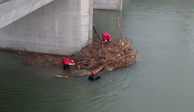 I přes nepřízeň počasí a neustálý déšť, strážníci Městské policie Přerov opět čistili mostní pilíře na řece Bečvě.