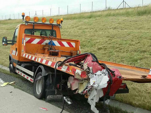 Dnes po osmé hodině ranní došlo k vážné nehodě na 305. kilometru dálnice mezi Olomoucí a Ostravou. Dodávka zde narazila do vozidla Střediska správy a údržby dálnic. Dodávka skončila u středových svodidel a řidič v ní zůstal zaklíněný.