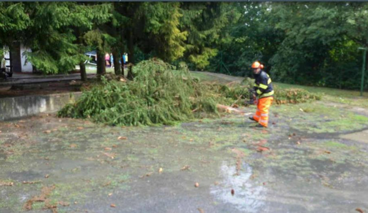 „V areálu tábora v Čekyni u Přerova při bouřce spadly dva stromy, některé další je nutno také odstranit," řekl mluvčí hasičů Zdeněk Hošák.
