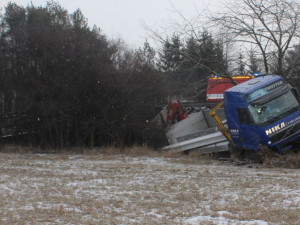 Řidič s kamionem vyjel vpravo mimo cestu, kde se v příkopu částečně převrátil na pravý bok. „Při tom došlo k vysypání nákladu betonových panelů. Ty leží většinou mimo komunikaci, do které zasahují pouze částečně. Ke zranění osob při dopravní nehodě nedošlo. Došlo naopak k poškození svodidel v délce přibližně šedesáti metrů. Výše způsobené hmotné škody byla předběžně vyčíslena na 800 tisíc korun. Provedenou dechovou zkouškou policisté u muže změřili hodnotu 3,2 promile alkoholu v dechu," popsal policejní mluvčí František Kořínek.