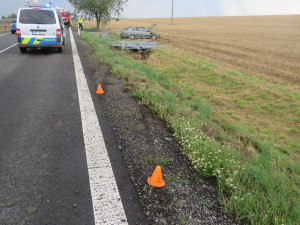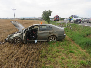 Včera v půl páté odpoledne se na silnici mezi Prostějovem a Žešovem stala dopravní nehoda. Pětadvacetiletá řidička Škody Octavie se dle svých slov plně nevěnovala řízení, protože otevírala okno. Vyjela vpravo na krajnici, lekla se, strhla řízení vlevo, pak zpět vpravo, vyjela mimo silnici a přední částí auta postupně narazila do travnaté plochy a do dopravní značky.