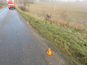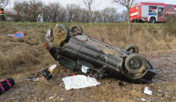 "Vozidlo pětadvacetileté řidičky z dosud přesně nezjištěných příčin po projetí levotočivé zatáčky dostalo smyk a sjelo vpravo mimo komunikaci z několikametrového srázu do pole. Zde se vozidlo přetočilo na střechu a v této poloze se zastavilo. Při sjetí z komunikace vozidlo porazilo dopravní značku," řekl policejní mluvčí František Kořínek.