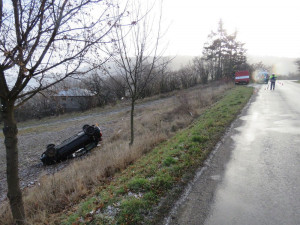 V pondělí v půl deváté ráno došlo mezi Plumlovem a Mostkovicemi k dopravní nehodě. Pětadvacetiletá řidička nezvládla levotočivou zatářku, auto dostalo smyk a skončila s ním na střeše v poli.