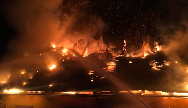 Hasiči se od brzkých ranních hodin potýkají s rozsáhlým požárem střechy bývalého statku v Bohdíkově na Šumpersku.