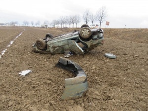 "Vůz vyjel mimo komunikaci na pole, kde se několikrát přetočil přes střechu vozidla, na které nakonec zůstal stát. Šetřením bylo zjištěno, že na vozidle byly pneumatiky určené pro letní provoz, které byly opotřebené pod zákonem stanovenou hodnotu," řekla policejní mluvčí Ivana Paroulková.