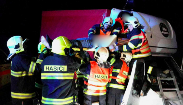 Hasiči zasahovali u vážné nehody náklaďáku, zranily se tři osoby. Jednu z nich museli z kabiny hasiči vyprostit