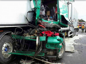 Spící řidič se soupravou narazil do nákladního vozidla svého krajana, který převážel písek a stál v koloně. „Nákladní vozidlo s pískem narazilo do osobního vozidla a to vrazilo do dalšího stojícího nákladního vozidla. Při nehodě byl řidič, který způsobil havárii, lehce zraněn," popsal nehodu policejní mluvčí Libor Hejtman.