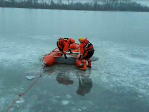 FOTO: Hasiči zachraňovali v jednom z tovačovských rybníků srnku, propadl se pod ní led