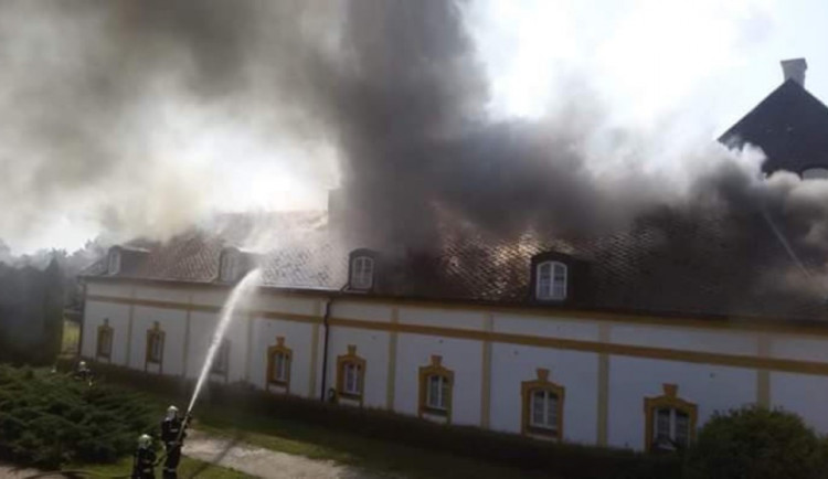 V Hnojicích na Olomoucku zasahuje několik jednotek hasičů u požáru střechy bývalé fary. Oheň zachvátil přibližně 450 metrů čtverečních plochy střechy.