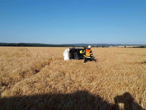 Dnes před tři čtvrtě na sedm ráno došlo na silnici mezi Kostelcem na Hané a Prostějovem k nehodě dvou osobních aut. Auta značek Fiat a Škoda jela obě ve směru od Kostelce na Hané a na rovném úseku silnice několik stovek metrů před Prostějovem došlo k jejich střetu. Fiat vyjel vpravo mimo silnici, dvakrát se přetočil přes střechu a zastavil v poli na levém boku. Škoda zůstala vlevo od silnice na souběžné železniční trati otočená proti směru jízdy.