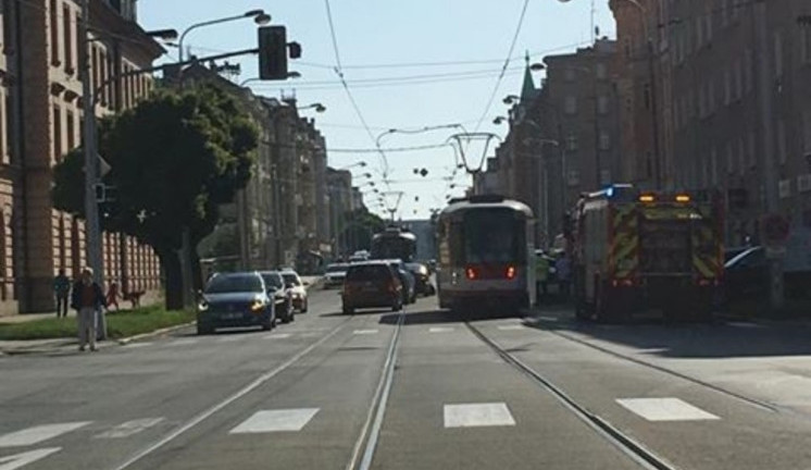 Ke srážce dvou aut došlo na kolejích na Masarykově třídě v Olomouci dnes pár minut před desátou hodinou ráno.