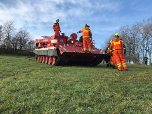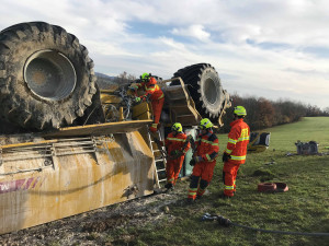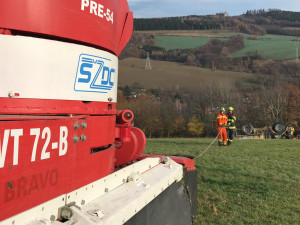 Drážní Hasiči nasadili při zásahu u převráceného zemědělského stroje svůj vyprošťovací tank VT-72 B. Hasičská Záchranná Služba Správa železniční dopravní cesty z Přerova strávila náročným zásahem osm hodin. Nehoda se stala 19. listopadu u Libiny.
