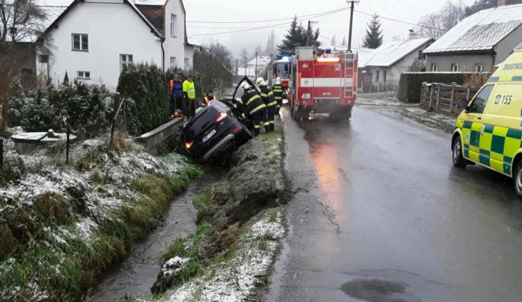 Nehoda se stala před 08:00. "Řidička osobního vozu přejela z dosud nezjištěných příčin do protisměru, sjela do potoka, kde následně narazila do betonového mostku," uvedla policejní mluvčí Jiřina Vybíhalová. Příčinu a okolnosti havárie policie nadále vyšetřuje. Hasiči uvedli, že havarovaný vůz zůstal po nehodě na boku, zaklíněnou řidičku hasiči vyprostili a předali do péče zdravotnické záchranné služby.