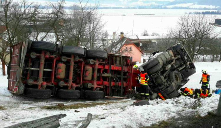 „Z kamionu unikaly provozní kapaliny, hasiči je proto jímali do připravených nádob. Hasiči zajistili havarovaný kamion proti vzniku požáru a spolupracovali s Policií ČR a zravotnickou záchrannou službou, protože při nehodě došlo ke zranění," řekla mluvčí hasičů Vladimíra Hacsiková.