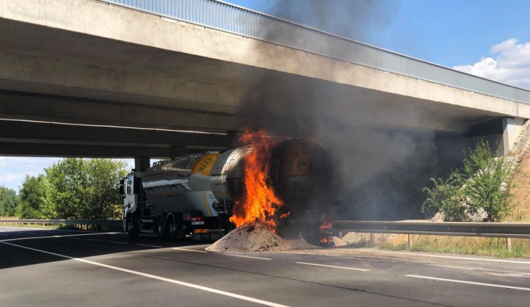 Na sjezdu z dálnice D35 na Nemilany dnes odpoledne vzpála cisterna. Provoz je v místě zastaven, na místě zasahují hasiči.