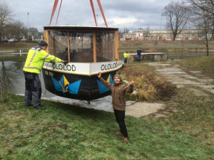 Nakládka Ololodi a její následný převoz započal v pátek dopoledne, konkrétně v 9:30. "Při nakládce asistoval jeřáb spolu s nákladní autem. Jeřáb nejprve rozbil led v místě nakládky svým hákem a pak vyzvedl Ololoď na nákladní auto," popsal krátce proces vyzvednutí lodi kapitán Šimon Pelikán.