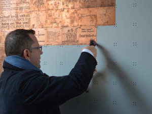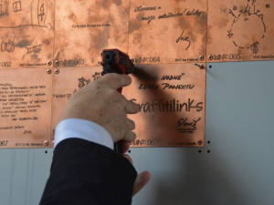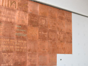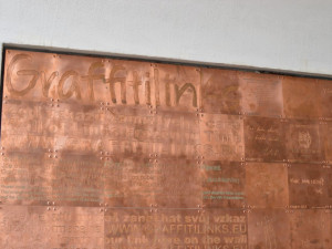 Prostor Vodární ulice nově hlídá i bezpečnostní kamera. Současná podkladová plocha pojme asi šest stovek cedulek. „Až bude plná, lze přidat další a je možné pokračovat prakticky do nekonečna,“ naznačil Mecka.