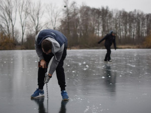 „Bruslení na takovém ledě nemůžu většímu množství lidí doporučit, ale doufám, že o víkendu tady už bruslit budeme,“ prohlásil po vrtání Jiří, zatímco blízko kolem nás projel muž na bruslích. „Hasiči doporučují tloušťku ledu minimálně osmnáct centimetrů, ale už asi dva dny nám tady někteří jednotlivci bruslit zkouší,“ uzavírá.