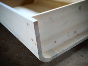 Lehce mne přece jen zamrazí, když Jiří Ďuriš zmíní Coffinku. „Tu jsme do porfolia přidali jako poslední, a s velice těžkým srdcem.” Autor rakví totiž mluví o zmenšené verzi pro děti. Abych zahnal takové myšlenky, ptám se na velmi podstatnou věc. Zajímá mne totiž, za jak dlouho rakev vyrobí. „Jasný, ptáte se dobře, protože vyrobit se musí do pohřbu, to dá rozum. Ta výrobní doba se pohybuje kolem tří dnů, včetně dopravy, pokud se nejedná o nadstandard,” počítá Ďuriš. Rakev je navíc vyrobena ze smrkového dřeva nebo z ohýbané bukové překližky a konstruována tak, aby vydržela jen krátkou dobu. „Někteří lidé si ji chtějí třeba koupit předem, využít jako úložný prostor, a pak si do ní nakonec i lehnout,” říká trochu morbidně Ďuriš. To ale není možné, rakev je určena ke spálení nebo položení do země za pár dní od výroby. Lidé mají ale pořád alternativu v podobě urniček ve stejném stylu, které jsou naopak bytelné a vydrží.
