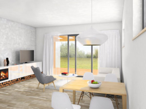 „V základní ceně, oproti běžným řešením, je podlahové vytápění či krbová kamna a nadstandardní vybavení koupelen,” říká Ing. Patrik Legut. Podle něj je dnes normální, že developerské firmy avizují skvělou cenu za dům s pozemkem, ve finále ale takový dům přijde zájemce třeba i o milion dráž, protože ve standardu chybí finální úpravy povrchu jako podlahy, dlažby, obklady, interiérové dveře, vybavení koupelen zařizovacími předměty a také topení. „Takovou cestou se nechceme vydávat, proto má zájemce o dům již v základní ceně vše co je potřeba pro běžný provoz domu. To ovšem neznamená, že si budoucí majitel nemůže upravit dům podle svého,” vysvětluje Patrik Legut, „Ale může se hned nastěhovat a plnohodnotně bydlet.”