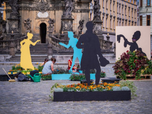 „Květinovou výzdobu na čtyřech záhzonech vytvoří kombinace trvalek a letniček a do každého záhonu bude umístěna silueta postavy. Vprostoru před sloupem Nejsvětější Trojice budou umístěny tři fotostěny s výřezem na obličej, které představují barokní siluety v divadelní póze," popisuje návrh Marie Doleželová z Výstaviště Flora Olomouc, které květinovou výzdobu Horního náměstí po dobou akce zajišťuje.