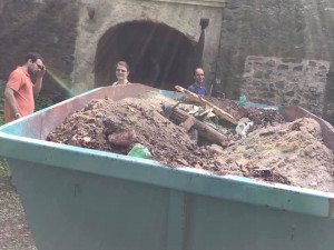 „Dnes se podařila velká věc, schodiště je po letech plně odklizeno a světlo světa spatřily i všechny podlahy v útrobách branky. Dva kontejnery plně nakrmeny, začali jsme likvidovat odpadávající omítku," sdílejí nadšeně dobrovolníci na facebookové stránce Letňák spojuje město.